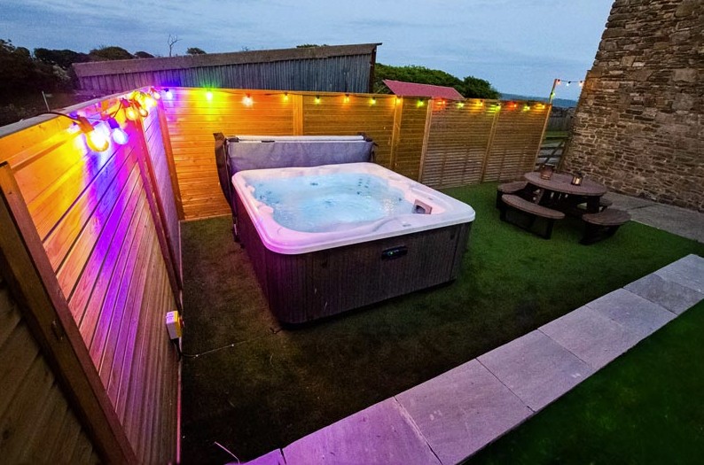 Outside there is a jacuzzi hot tub to soak yourself in. There’s also a picnic table and chairs for al fresco dining, plus a large enclosed garden. A play area is perfect for children and comes with swings and a slide, ride-on buggies and a trampoline. There is a table tennis table in an outdoor shed. We also have the converted Cowshead that comes with seating and a BBQ and down by the brook there is a sauna and cold water plunge and bucket.