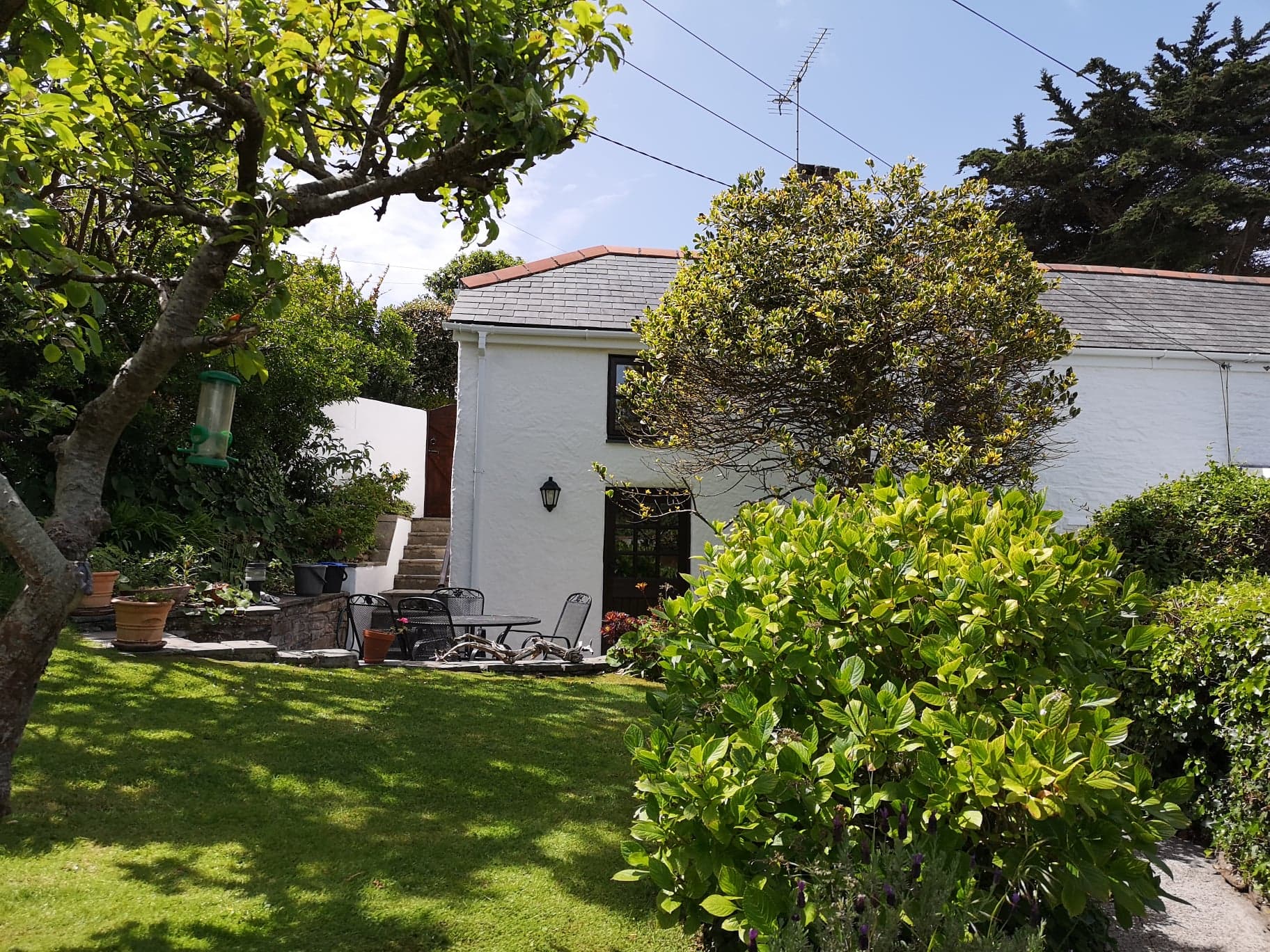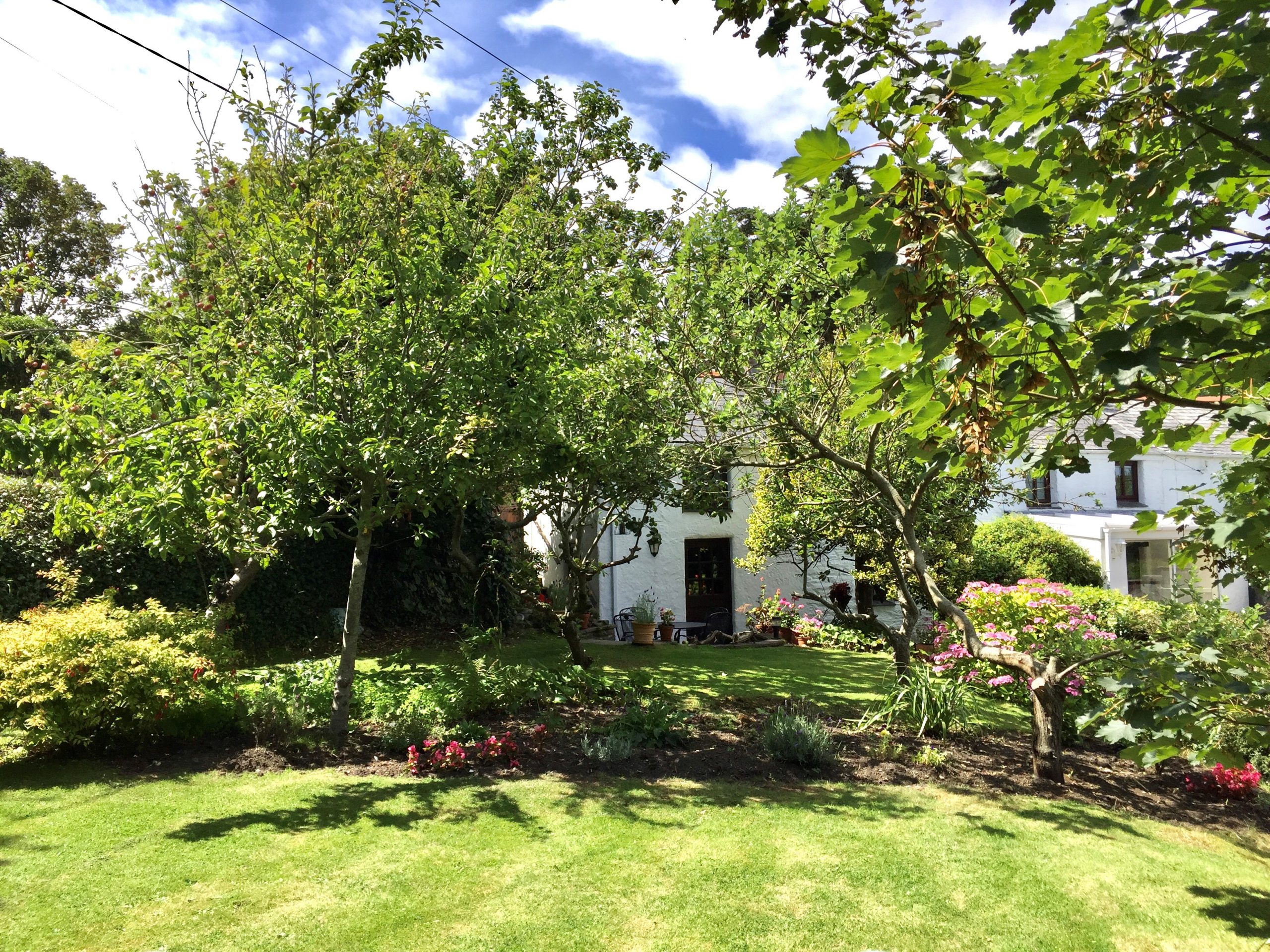 Outside, a secluded patio overlooks the lovely garden, which sits in an elevated position with open countryside views. The garden, with its small orchard and variety of shrubs, attracts plenty of birdlife. Access to the cottage is via steps at both the front and rear private entrances and guests have use of a parking space and lock-up garage.