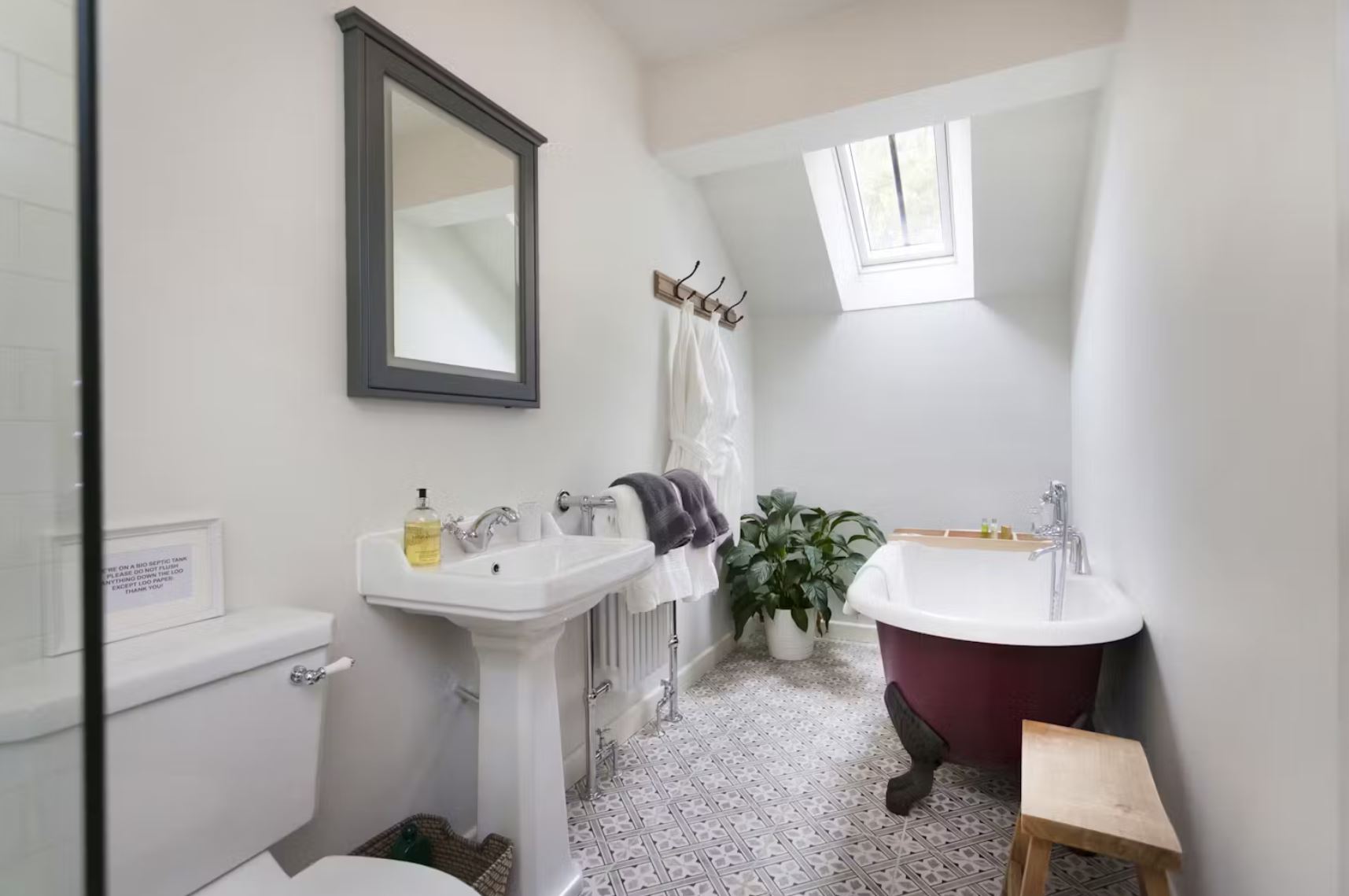 Upstairs there are two attractive en suite bedrooms with wonderful walk-in showers and a lavish freestanding bath. The beds come with quality bed linen and towels.