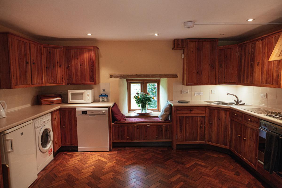 With hundreds of acres of farmland and woodland to explore, adventure is never far away at Middle Coombe Farm. You can wander through the gardens admiring the flowers, relax with a book in the sheltered front garden, or follow peaceful footpaths where you might spot deer at dawn or dusk. From May to September, the solar-heated outdoor swimming pool is open, its clear water glistening in the sun, while the large eco hot tub, seating up to eight, is available year-round. Both are set within a private, hedged garden with a changing house and outdoor gas showers. The sunken pool garden provides a tranquil retreat on warm days and in cooler months, there’s nothing better than stepping straight into the bubbling warmth of the hot tub. The Cider Barn offers a flexible indoor space that can serve as a games room or party venue, featuring a slate floor that stays cool in summer and warm in winter, along with a pool table, table tennis and table football. Outside, guests can enjoy a trapeze, willow dome, trampoline and forest trails with swings, all used at their own risk under supervision. The courtyard is perfect for alfresco dining, with large wooden tables for breakfast, barbecues and late-night gatherings beneath the stars, an ideal spot to toast marshmallows and share stories around the glowing fire.