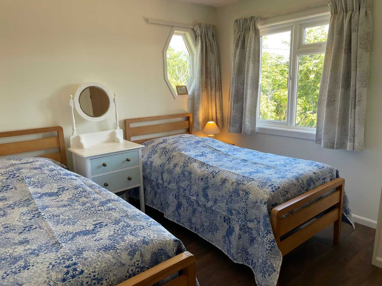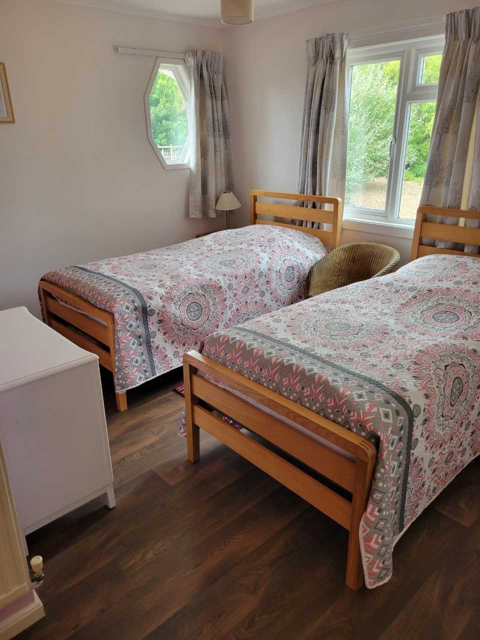 Two twin bedrooms are available: one overlooks the rear garden and has two 3ft divan beds. The second bedroom overlooks the front garden and also has two 3ft divan beds. There is also room for a z-bed (suitable for a child) in this bedroom. Both bedrooms share a shower room which has an electric shower, WC and basin.