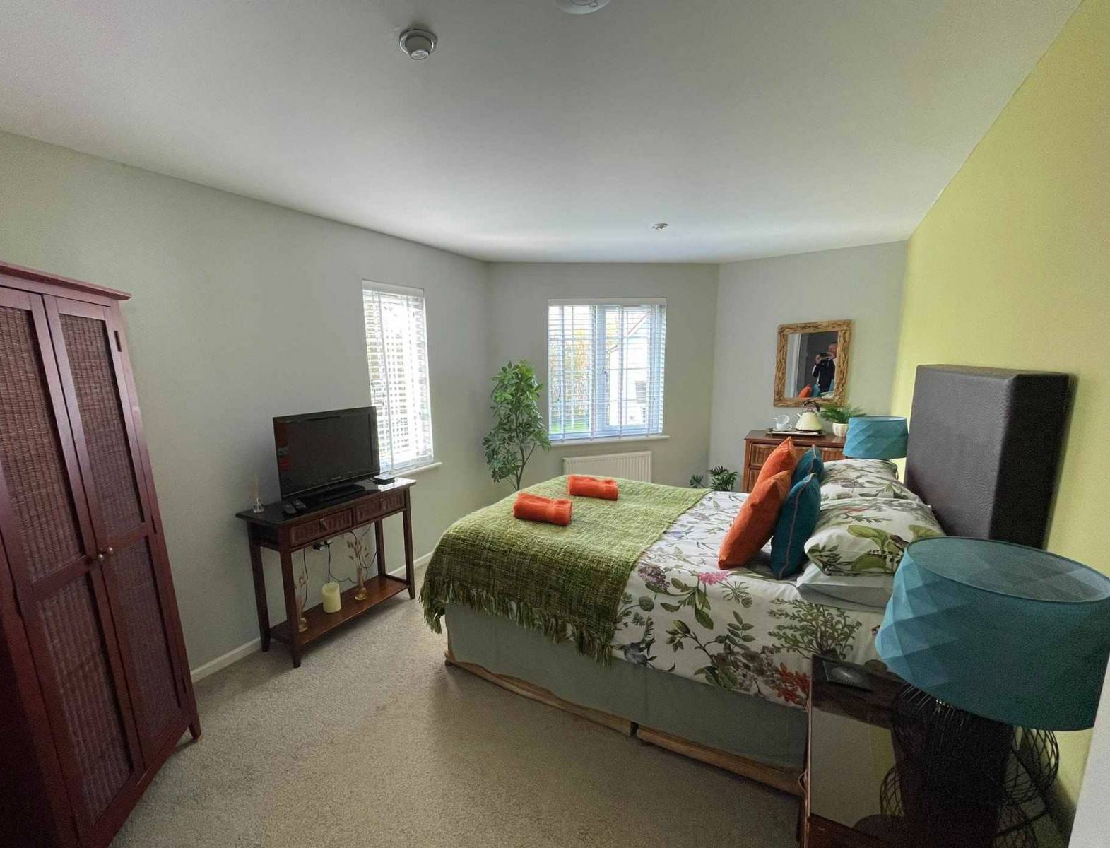 The accommodation includes three well-appointed bedrooms with flexible sleeping arrangements. The master bedroom is located on the top floor and features a zip-and-link king-size bed that can be arranged as a double or twins, a 32-inch TV with Sky Q, and an en-suite bathroom with bath, shower and WC. On the first floor, the second bedroom offers a king-size double or twin beds along with a 32-inch TV with Sky Q. The third bedroom also sits on the first floor and has twin beds that can be made into a king-size double on request with a mattress topper. A main family bathroom with shower, WC and hand basin is also located on the first floor.