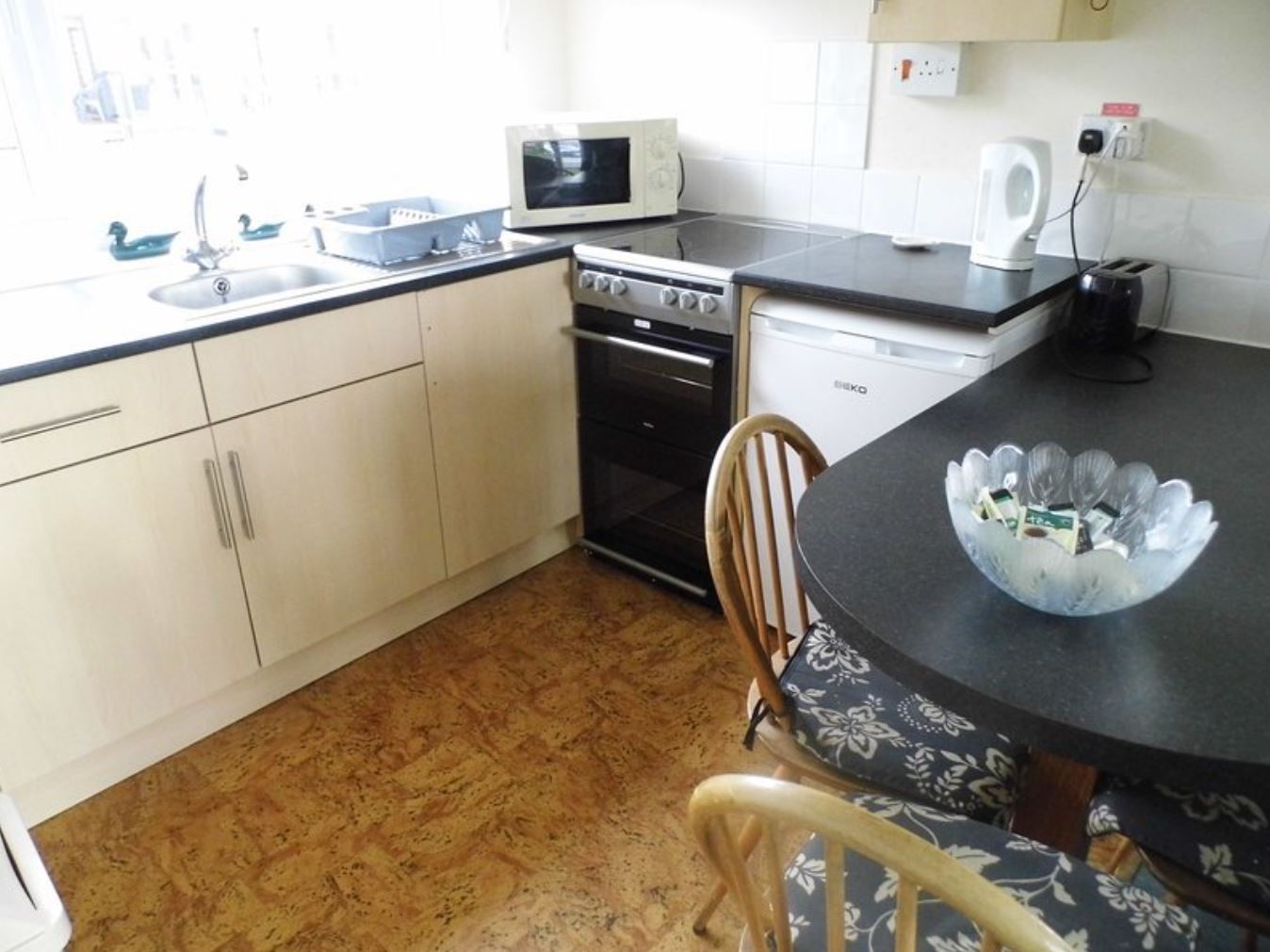 Our cottage comes with a newly refurbished kitchen that includes a new stainless steel electric oven, grill and ceramic glass hob. The living room offers a great spot to relax after a day sightseeing. There is seating and a 32’’ Freeview TV/DVD player.