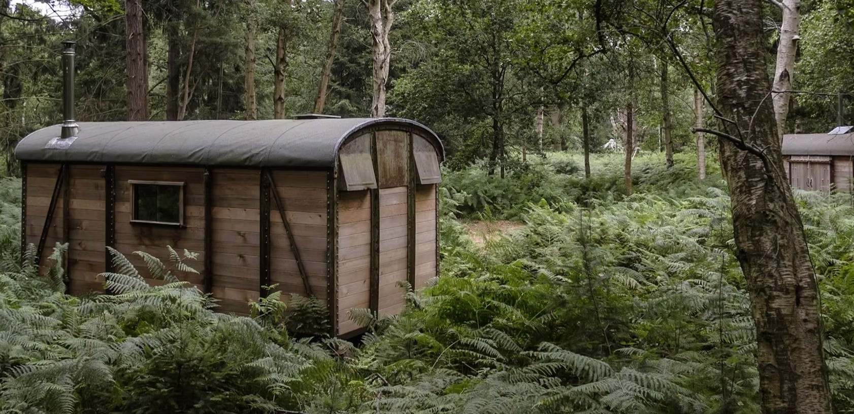 Each structure has its own story and charm. The Bird Houses, designed in a simple A-frame style, are nestled behind the Meeting House and offer peaceful, low-impact accommodation with wooden roofs and canvas sides that keep the interiors cool and light in summer. The Railway Carriages are full of character and history, dating back over a century and beautifully restored with wood paneling, large windows and cosy French enamel stoves. The Silos, once grain stores, have been transformed into spacious, insulated woodland lodgings that resemble oversized yurts, perfect for families, with ample room to spread out, play games, or ride out a rainy day in warmth and comfort.