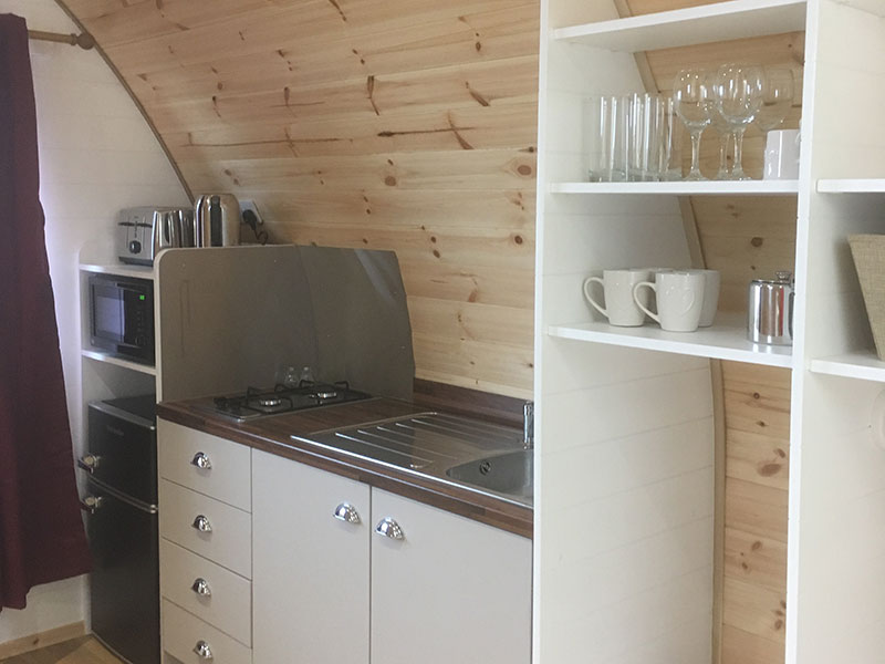 The pods include a modern kitchenette with a double gas hob, fridge & freezer, microwave, kettle, toaster all cooking utensils, cutlery & crockery. There are also en suite facilities and toiletries. Outside there is Rattan furniture, perfect for enjoying a glass of wine whilst admiring the breathtaking setting. Our largest pod is The Beehive, sleeping 6. The pod includes 1 double bed, 1 large sofa bed and a set of bunk beds.