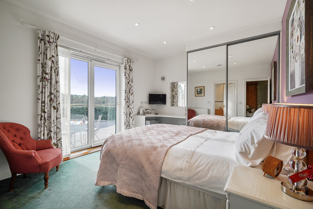 Our B&B has 2 bedrooms ideal for couples or take the entire wing for your family. All guest rooms have bathrobes, hair dryers, flat screen televisions and Wi-Fi broadband is available. In room facilities include a tea & coffee tray, fridge with fresh milk, water & fruit juice. There are two double or twin rooms with en suite bathrooms.